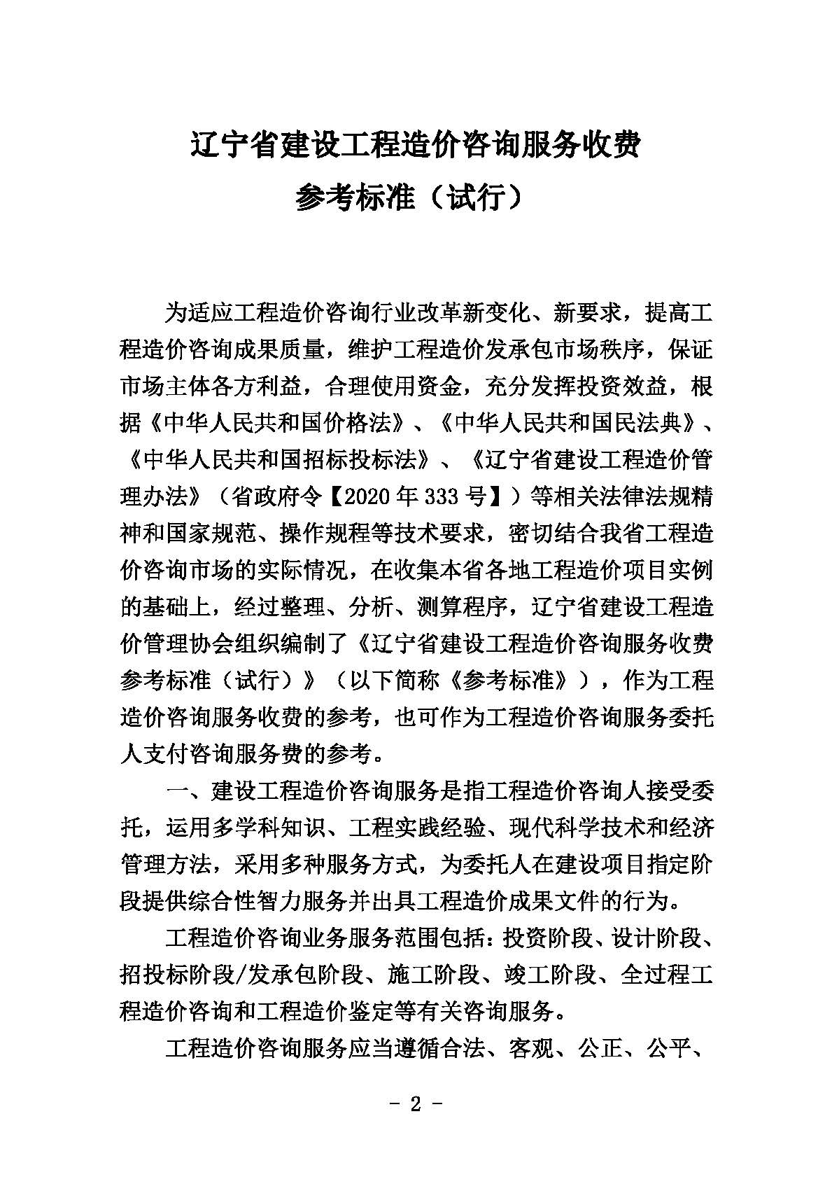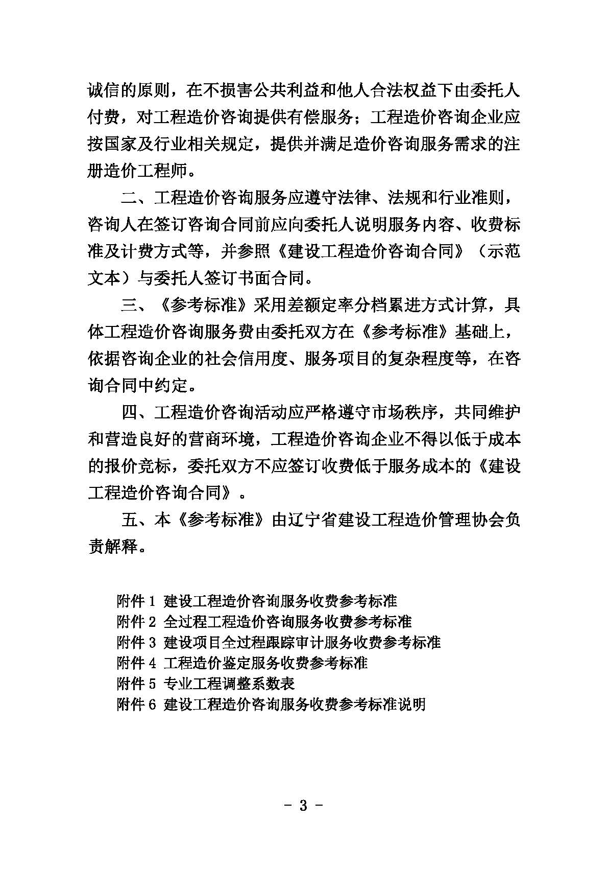 辽宁省建设工程造价管理协会《关于印发<辽宁省建设工程造价咨询服务收费参考标准(试行)>的通知》