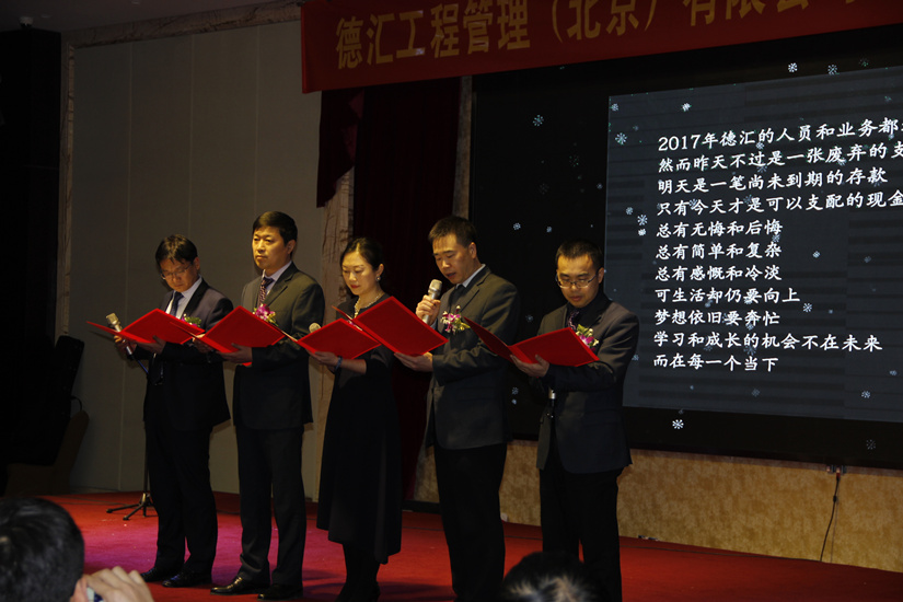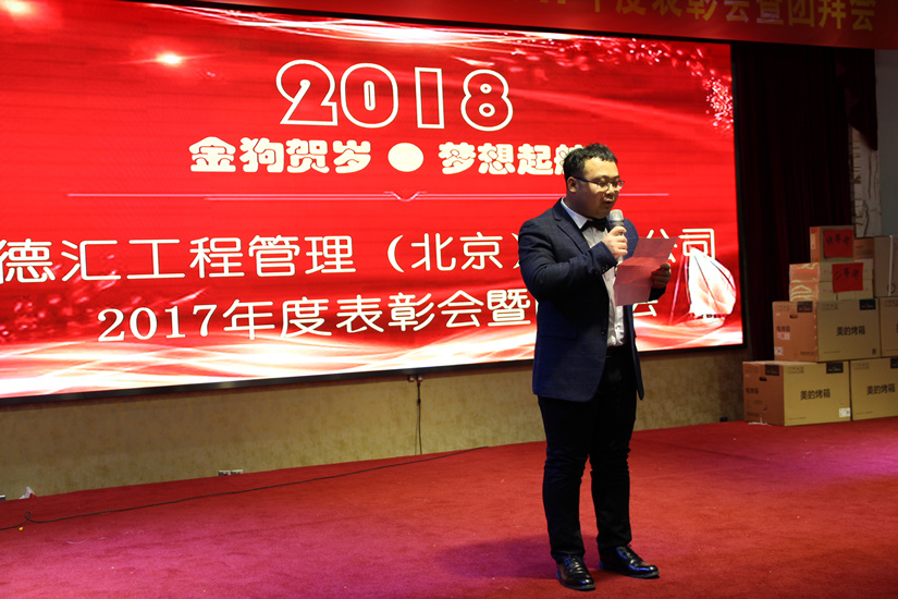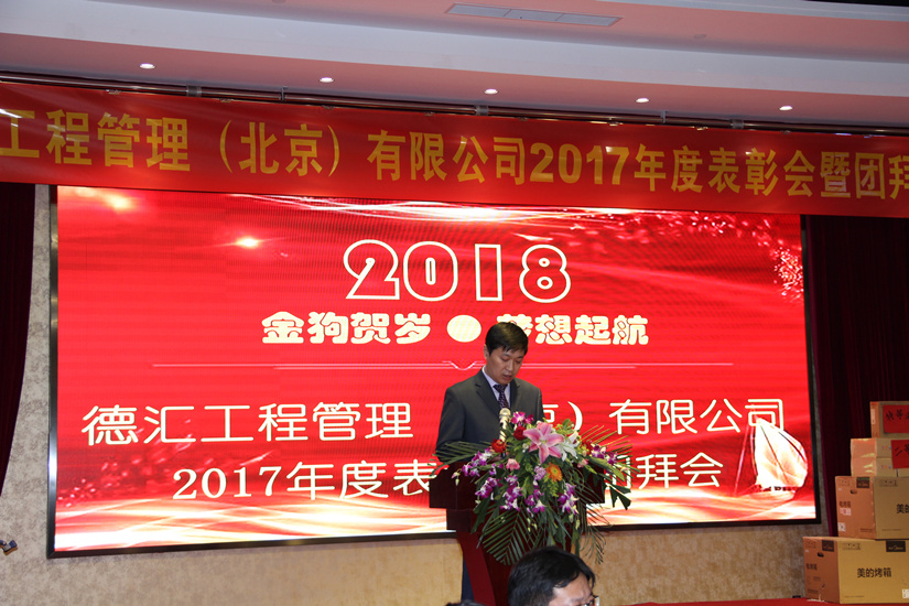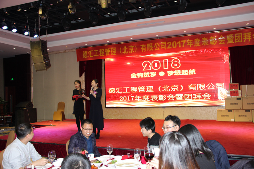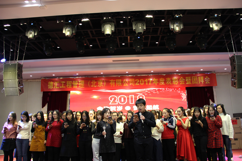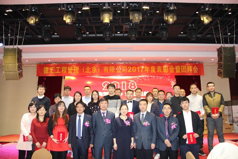 伴随着2018年春天的脚步,德汇工程管理(北京)有限公司201822日(周五)在北京盈坤维景酒店召开2017年度表彰会暨团拜会。公司员工、集团兄弟公司代表共计210余人参加了本次年会。