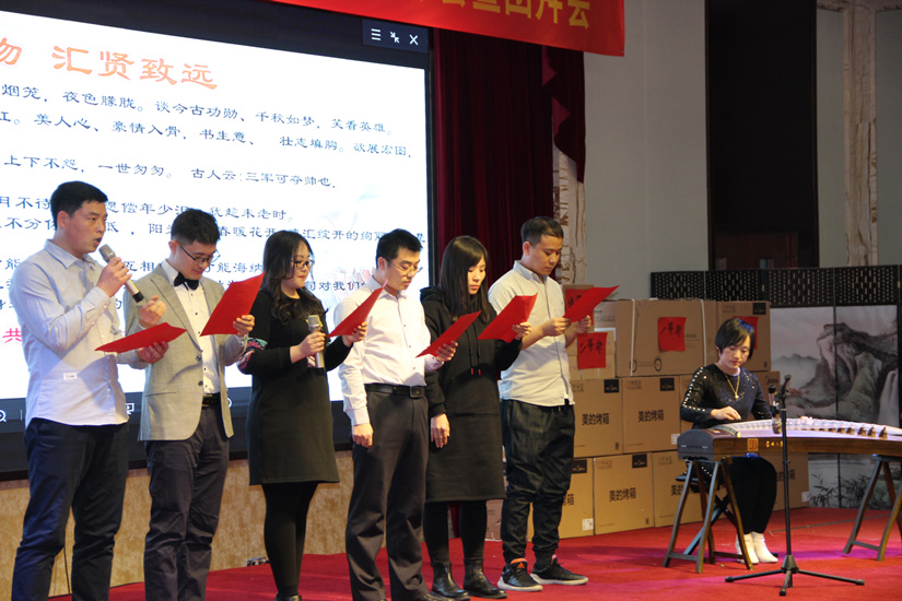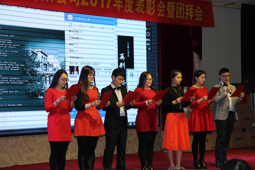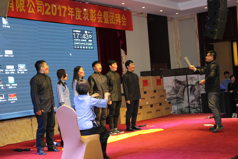 年会上,在公司高管进行了热情洋溢的诗朗诵表演,主持人宣布年会开始,随后,王维东总经理发表了新年致辞,勉励各部门员工在2017双亿佳绩的基础上再接再厉,并衷心感谢大家多年对德汇公司事业的鼎力支持;段少佐副总经理宣读了2017年优秀员工表彰通报,并对2017年度优秀员工进行了颁奖,李红飞代表优秀员工发言,表达了继续为公司勤恳工作的决心;造价一部二部全体100余位员工共同演唱了《站起来》,提振了整个年会的气势和气氛,各部门陆续带来精彩纷呈的表演最后,詹芙蓉董事长发表了祝酒词,晚宴正式开始,在晚宴进行过程中,穿插了紧张刺激的抽奖环节,晚宴一次又一次推向高潮