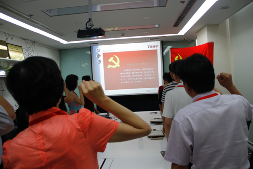 此次主题党日活动有重温入党誓词、现场爱心捐助两项内容。参加活动的全体党员又在党旗下,重温了入党誓词,铿锵有力的誓词,强烈震撼着在场的每一位党员的心灵。随后,全体党员带头进行了1对1捐资助学爱心捐款活动,各部门员工也踊跃参加,场面非常有序和谐。下一步公司不仅自身要捐款,而且还要发动分支机构进行捐款,力争8月份完成捐款活动,为更多的贫困学生家庭提供义务教育学费,为回馈社会做出我们企业应有的贡献。