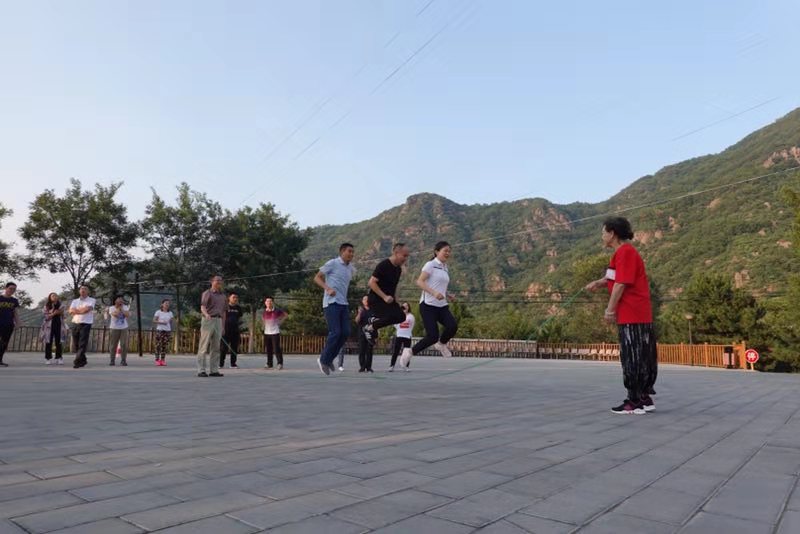 下午五点,我们分三组进行了跳大绳、人字接力、心有灵犀拓展游戏,大家在活动中增进了团结、协调、配合的默契,欢声笑语不断!