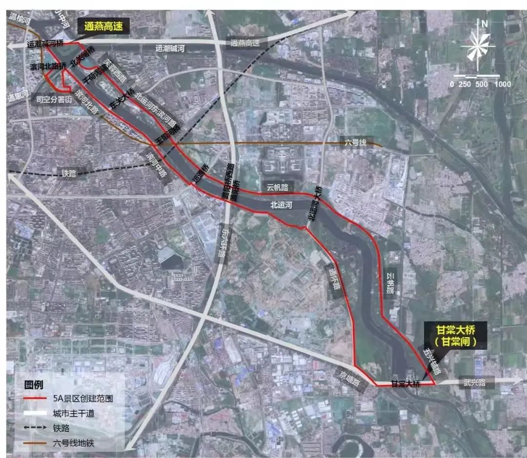 该项目位于京杭大运河,北起点(北京市通州区),创建区域面积8.55平方公里,(其中水域面积2.56 平方公里),景观提升环线全长24公里,项目建设内容覆盖园林绿化、景观步道、旧房码头改造、基础设施配套提升等领域。