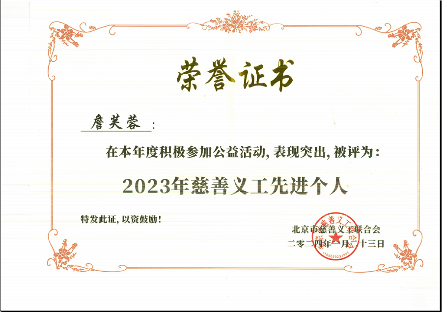 2024年1月23日,集团董事长詹芙蓉应邀参加“凝聚慈善力量 传递义工精神”北京市慈善义工联合会第十一届慈善义工风采展示会。