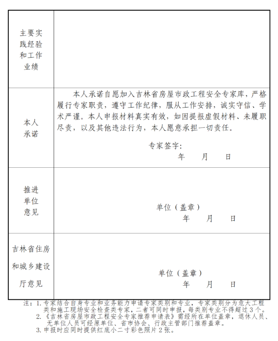 附件2:吉林省房屋市政工程安全专家推荐申请表