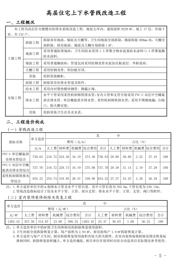 北京市住房和城乡建设委员会发布《北京市城市更新工程造价指标——老旧小区楼内上下水管线改造工程》
