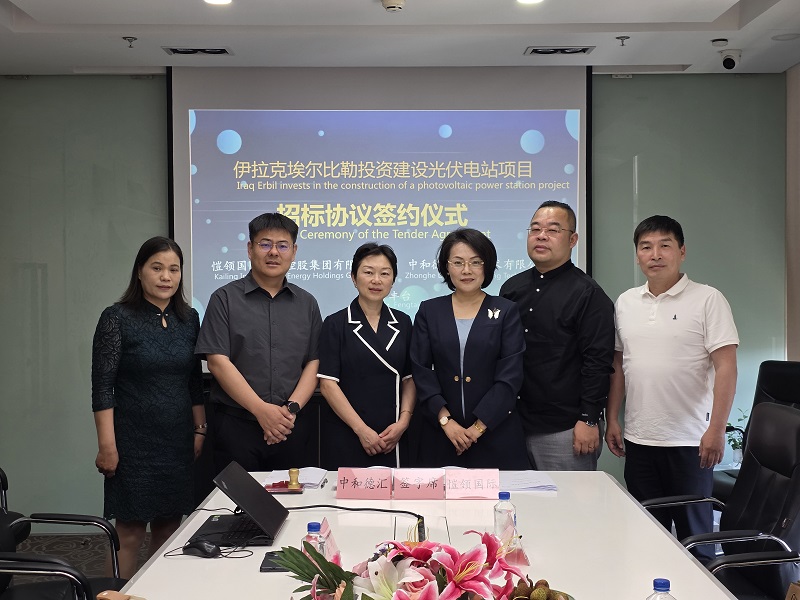 5月24日下午,愷领国际能源控股集团有限公司(以下简称“愷领国际”)与中和德汇工程技术有限公司(以下简称“中和德汇”)就伊拉克埃尔比勒投资建设光伏电站项目正式签约《招标代理协议》。