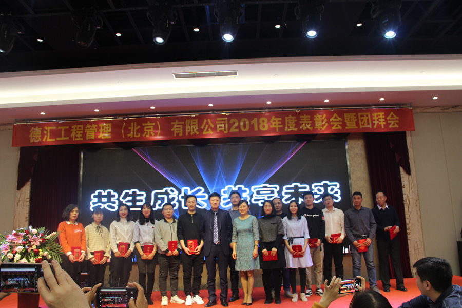 德汇工程管理(北京)有限公司于2019年1月18日(周五)在北京盈坤维景酒店召开2018年度表彰会暨团拜会。集团公司领导、兄弟公司代表、公司领导、分公司和运营中心事业部负责人、公司全体员工共计310余人参加了本次年会。